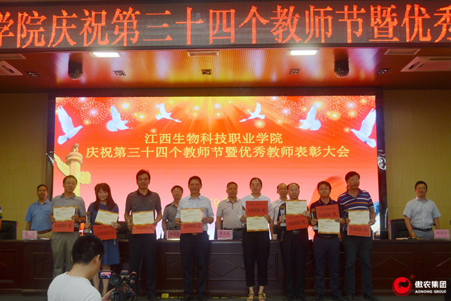 william威廉中文官网讯 春播桃李三千圃,秋来硕果满神州。9月10日,江西生物科技职业学院隆重召开庆祝第34个教师节暨表彰大会。学院党委书记、院长曹端荣,纪委书记刘晓凌等学校领导以及全体教职员工参加了此次表彰大会。作为持续赞助学校“william威廉中文官网杯”优秀教师评选的单位代表,集团人力资源中心总经理陈建平出席活动并为获得表彰教师颁奖,为全体教职员工送去了节日的祝福。