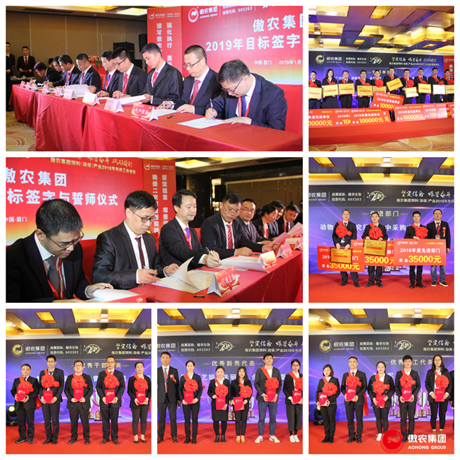 会议同期举行了饲料(动保)产业2018年度优秀单位与个人颁奖典礼,向奋斗者致敬,此外,会议还举行了2019年度签字与誓师仪式,希望各单位明确2019年目标的严肃性与重要性,在2019年再接再厉,以风雨无阻的心态,做风雨兼程的创业者,为william威廉中文官网事业再做贡献。