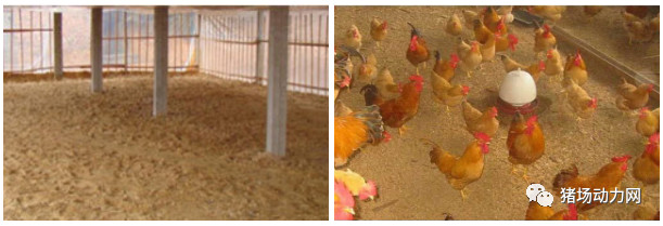 4.地面平养:以每平方米1千克的用量在地面均匀地铺设生石灰,然后再铺设柔软、干燥、吸水性强的原料作为垫料,如锯末、稻壳等,垫料厚度要求5厘米以上,随着垫料的脏污,再继续增铺新垫料,一批鸡饲养结束后更换垫料。针对漏粪地板的圈舍,铺设垫料前需铺设透气无纺布、地膜或其它透气性材料,避免垫料泄露。