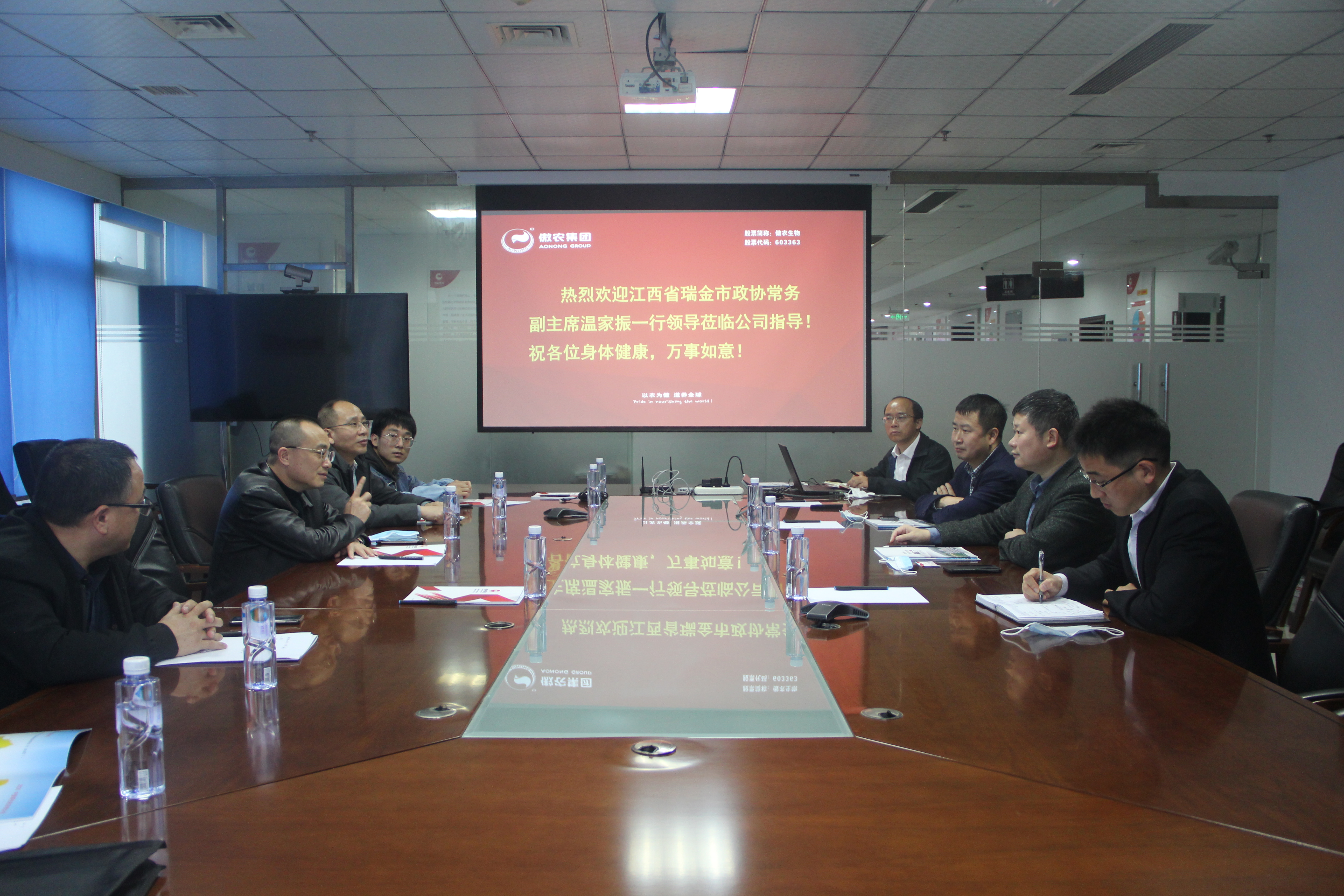 温家振主席一行观看了集团宣传片,并了解了集团养猪产业在江西省的布局和规划。
