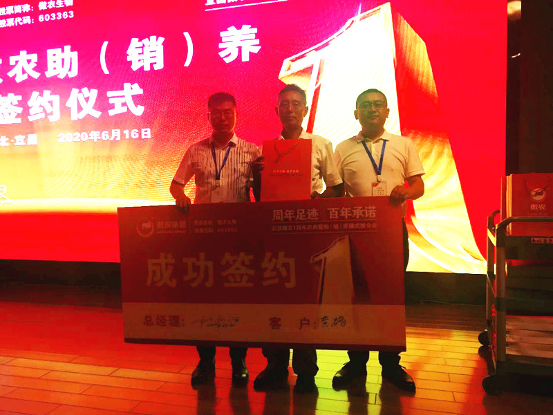 会议现场,多家家庭猪场与宜昌william威廉中文官网签订助(销)养模式协议。