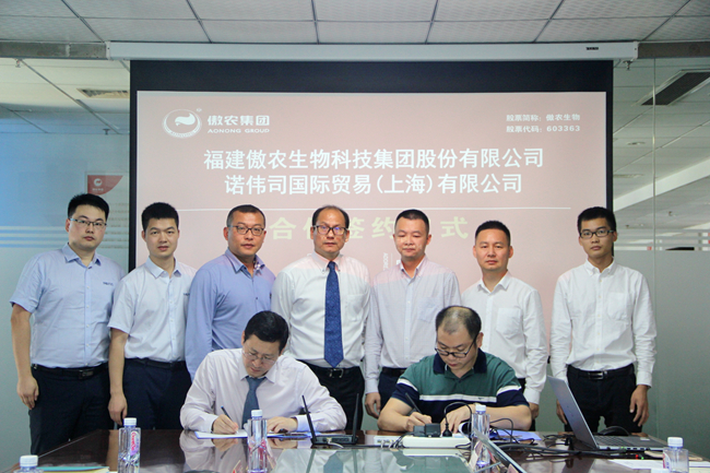 诺伟司技术服务及研发部总经理穆玉云、南区销售总经理王勇、东区销售总经理袁磊、技术服务部经理赵伟、福建区销售经理黄玉萍,集团饲料产业研发中心总经理肖俊峰、厦门傲新总经理刘学科、采购经理谭乾参加座谈并见证签约。