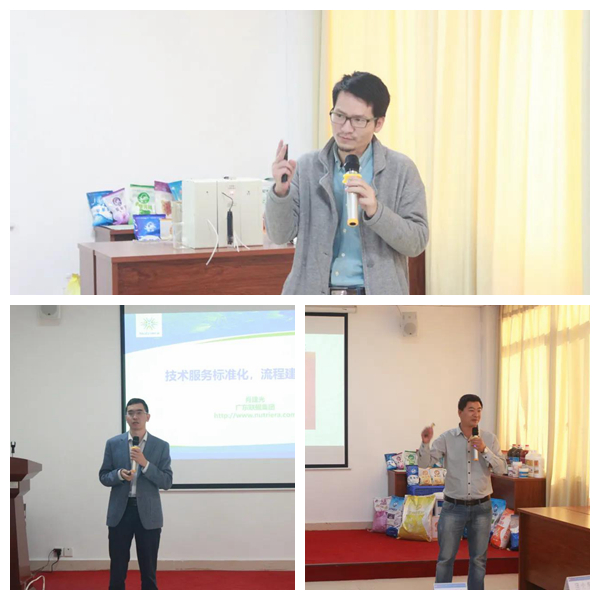 既有“头脑风暴”的现场碰撞,更有“专业大咖”的智慧分享。培训特邀华南农业大学教授甘炼、联鲲集团鱼来鱼旺总经理肖建光、沧州绿邦生物总经理李振武现场授课。专家们结合一线生产案例,围绕“养殖水质理化因子数据化在水产养殖中的应用、饲料企业如何实现动保产品快速上量、技术服务流程标准化”三大主题,用专业“点”亮未来,用智慧破解难题。