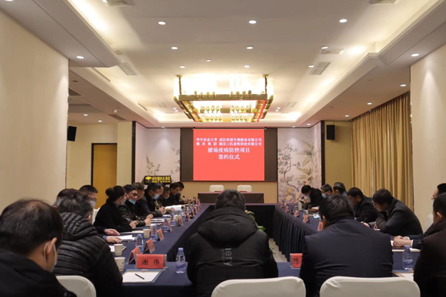 陈焕春院士表示,武汉科前生物始终专注于兽用生物制品研发、生产、销售及动物防疫技术服务,公司推出的科卫宁、科泻宁、科圆宁、科喘宁等“王牌”产品广受客户认可。与湖北三匹达成合作后,武汉科前生物将向湖北三匹提供优质的产品和卓越的服务,针对猪场疫病防控课题进行集中研究并推出可行性方案。他表示,本次合作是双赢举措,希望双方在合作过程中加强交流,用一分部署、九分落实的精神推进项目,共同把湖北三匹打造成当地更安全、更生态、更健康的样板化猪场。