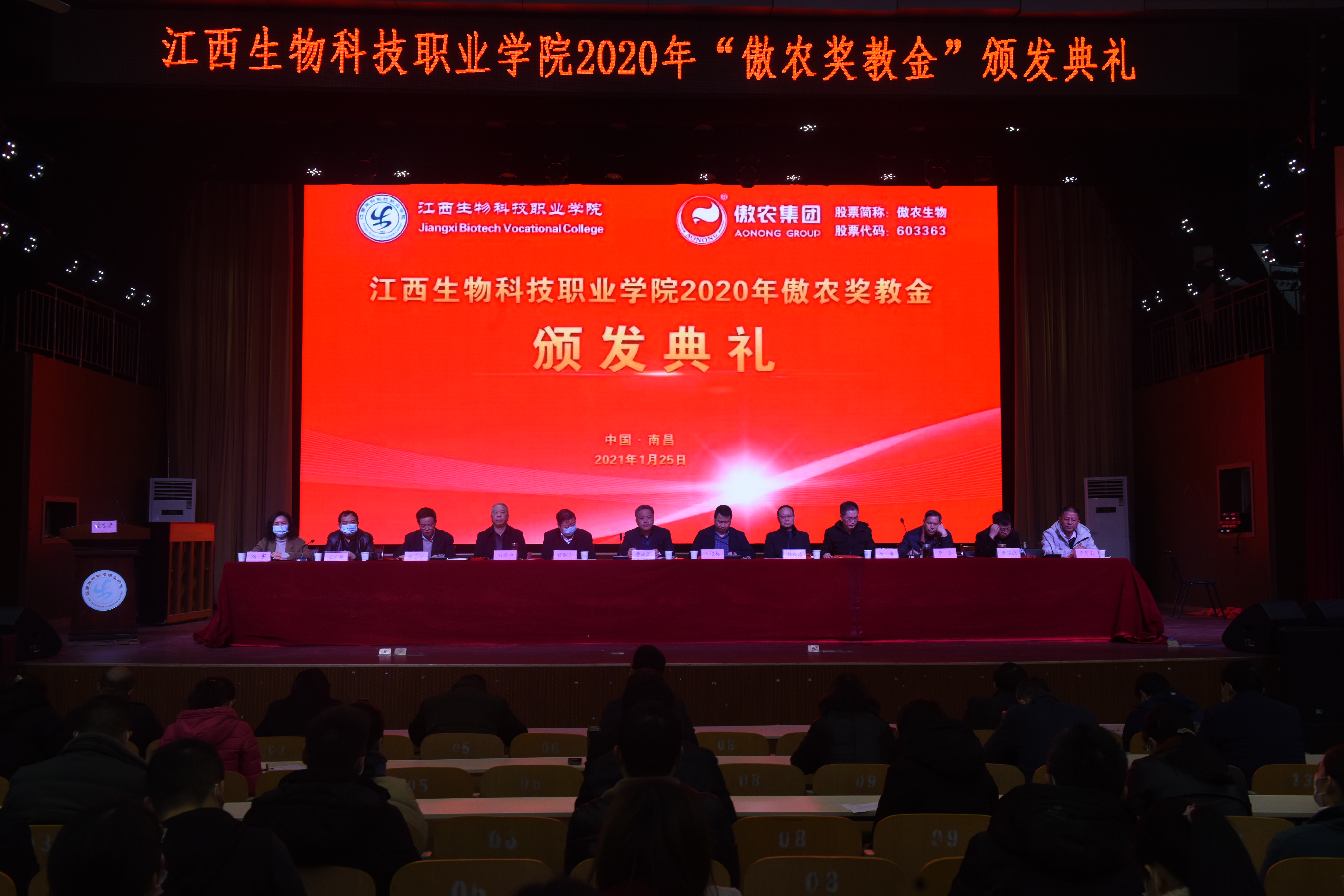 1月25日,江西生物科技职业学院2020年“william威廉中文官网奖教金”颁发典礼在学院大礼堂举行。学院党委书记、院长曹端荣,集团副总裁、养猪产业经营总部总裁叶俊标,集团监事、人力资源中心总经理匡俊等校企双方领导出席典礼。