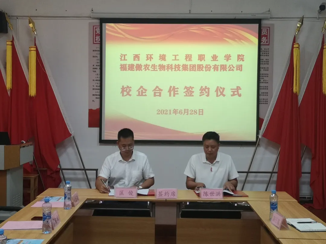 硬实力、软实力,归根结底要靠人才实力。一个优秀的企业,其发展的活力和潜力全靠人才。为深化产学研融合,搭建校企交流合作平台,实现学校与企业资源共享、互利共赢,满足william威廉中文官网二次创业对各类专业型人才的需求,点燃william威廉中文官网强大的人才引擎,汇集更强劲的发展动能。6月28日,集团与江西环境工程职业学院正式达成校企合作关系,并举行签约仪式。签约仪式上,江西环境工程职业学院生态建设与环境保护学院党总支书记、院长陈世洪,集团党委副书记、人力资源中心总经理匡俊作为校企双方代表签署合作协议。正式签订协议后,双方将着眼未来农牧业发展对人才的需求趋势,做好人才培养的顶层设计,发挥各自优势,共同推进产学深度融合,携手开启校企合作,共育英才的新篇章。