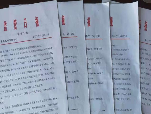 每天下午5:30,这样一份详细记录着武峰片区各基地生物安全防控工作情况的“监管日报”,会准时以纸质或电子的形式出现在总经理杨通禄、副总经理肖怀斌以及各片区、基地负责人的手上,让他们足不出户就能对猪场各项工作开展情况了如指掌。