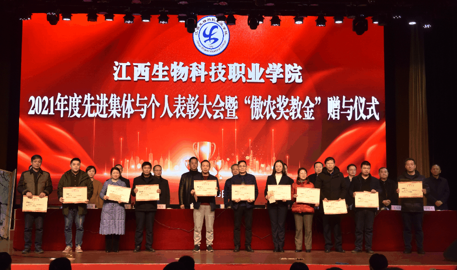 1月18日上午,江西生物科技职业学院(以下简称:学院)2021年“william威廉中文官网奖教金”颁发仪式在学院大礼堂举行,仪式上,集团再次践行担当与承诺,向学院赠与100万元奖教金,学院全体教职工参加仪式。学院党委书记、院长曹端荣,党委副书记谭酬志;集团董事、养猪产业经营总部总裁叶俊标,人力资源中心总经理匡俊等校企领导出席仪式。