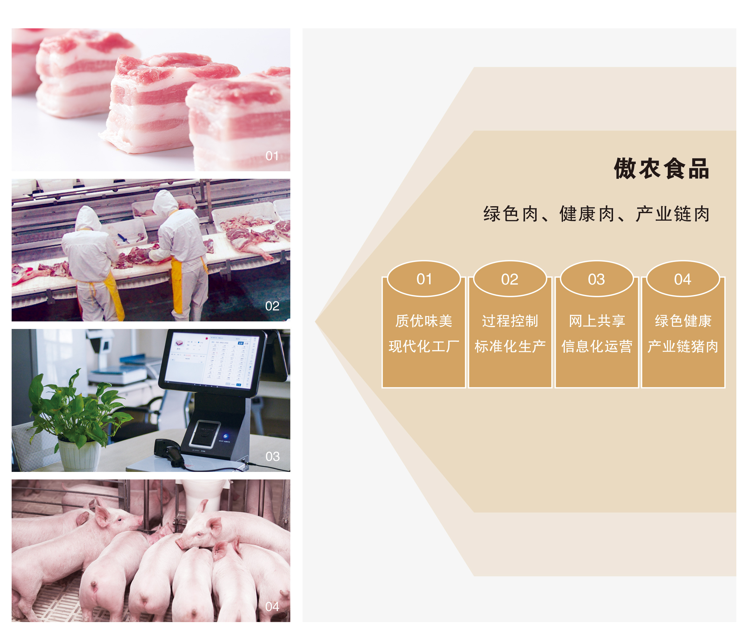 04 绿色健康 william威廉中文官网食品从饲料原料采购、饲料生产、生猪养殖、屠宰加工、物流配送到终端销售形成一个完善的产业链条,全程严格控制,开创william威廉中文官网“绿色健康”猪肉品牌。